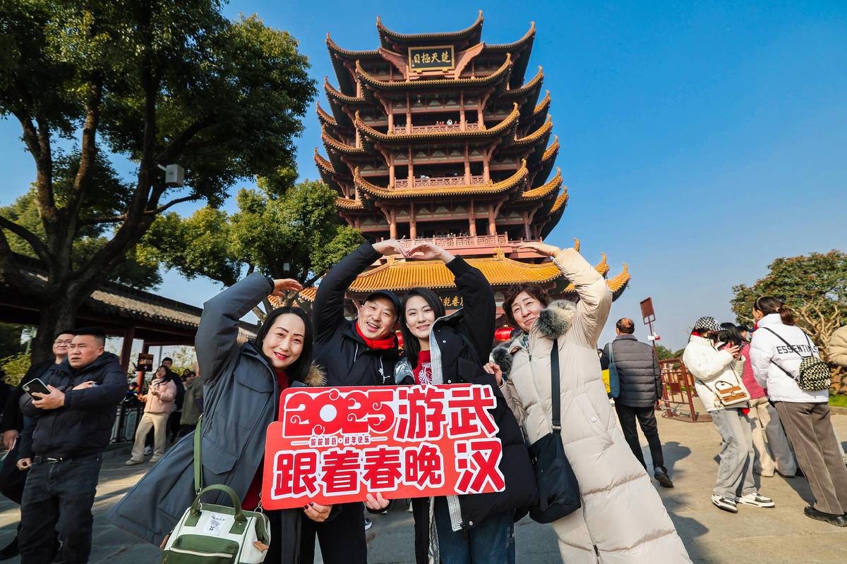 除夕夜黄鹤楼等一众武汉地标景点闪耀亮相央视春晚,让跟着春晚游武汉成为春节假期游客出游的新风尚。(湖北日报全媒记者 何宇欣 通讯员 李璇 摄)