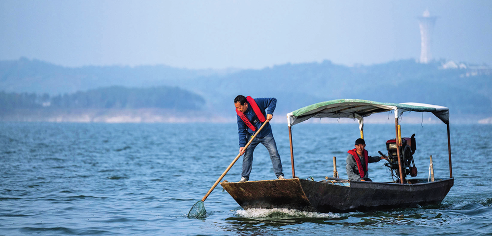 清漂员在丹江口水库作业 (2024年10月28日摄) 伍志尊摄 / 本刊