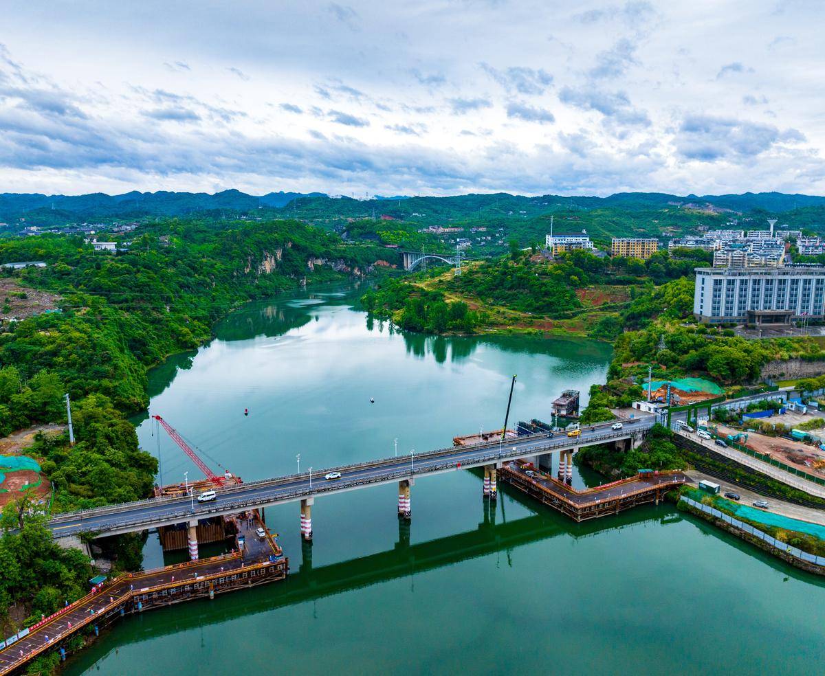 宜昌城区通往三峡大坝G348三峡公路起点处的黄柏河大桥拆除重建工程施工现场。