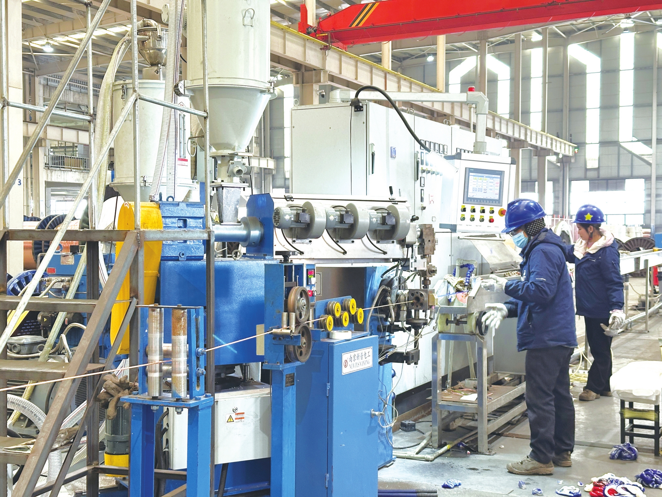 在中低压电缆生产车间,工人正在挤出电缆。记者沈媛 摄