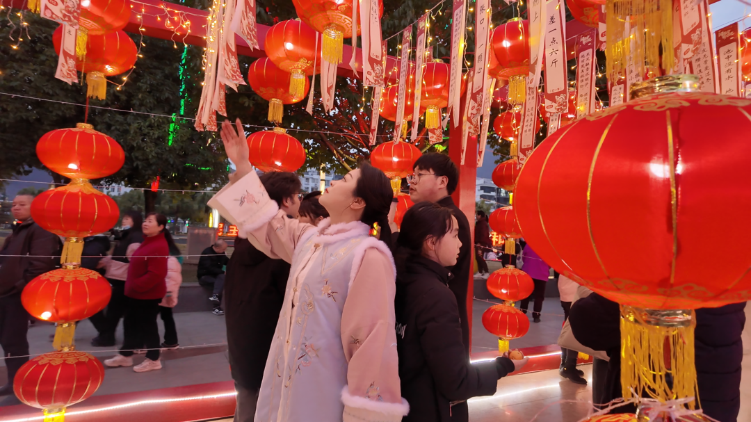 在兴山做美容生意的黄荣,在男朋友的陪同下,穿着一身汉服,早早地来到现场打卡。黄荣表示,今年的灯会很隆重,恰好自己也比较喜欢古风,所以特意做了妆造,来到现场之后,现场体验了一场非遗与国风结合的灯火,非常有氛围感,特别开心。