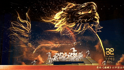 舞蹈《麒麟》以《诗经》为灵感,将中国古代神兽麒麟的祥瑞形象与君子的高洁品格融合创作。舞者在悠扬磅礴的音乐中,以“麟之趾,振振公子”的风度展现祥瑞降临的气象和吉庆祥和的祈愿。
