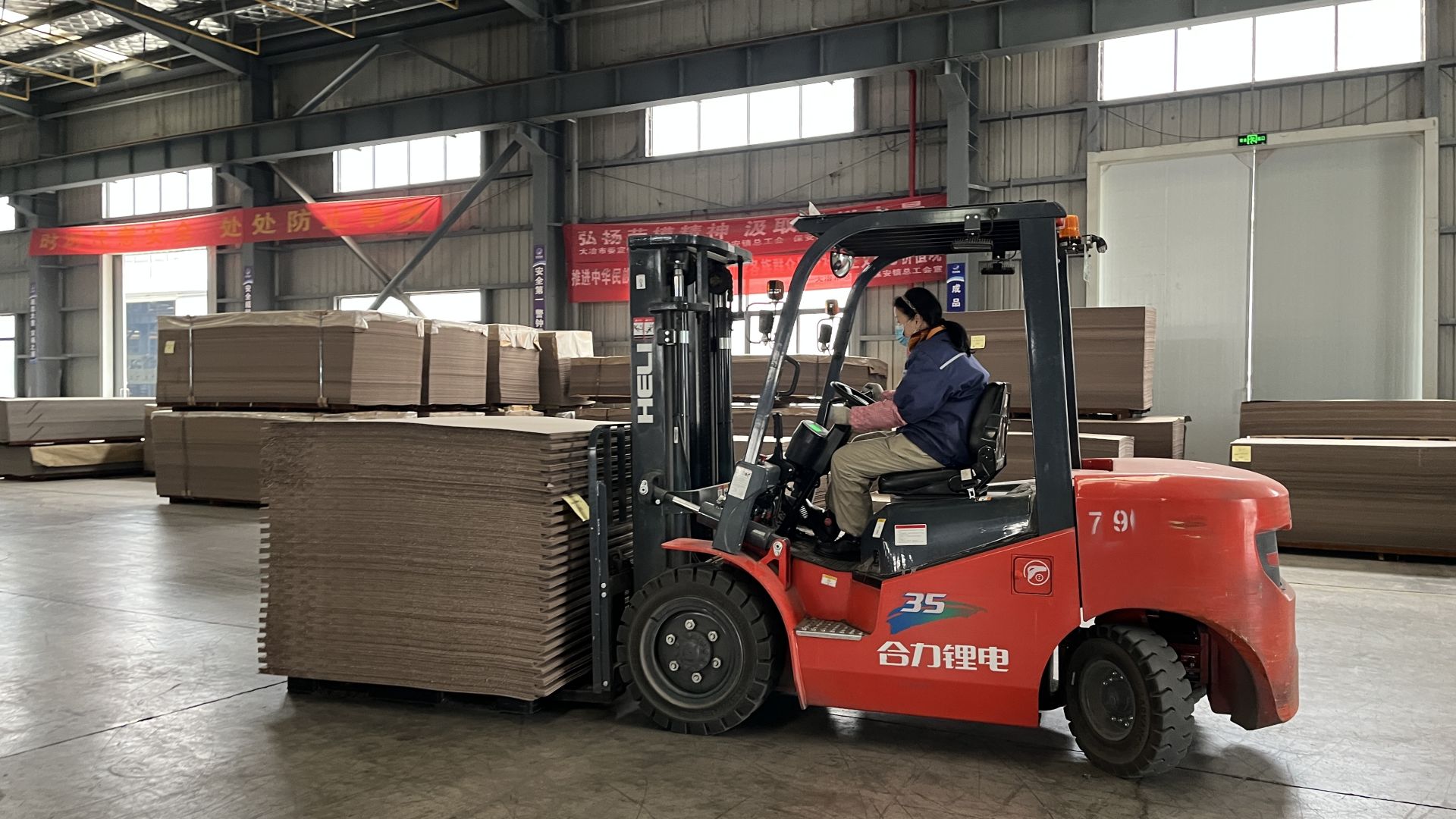 同样是生产包装产品的湖北东冶包装科技有限公司,车间内也是一片火热,叉车在不停搬运产品,工人们有序忙碌着手头上的工作。