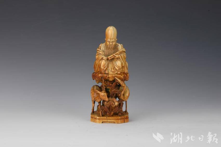 《哪吒2》里的无量仙翁及其座下的鹤童、鹿童,在武汉博物馆也能寻觅到几分踪影。该馆收藏的一件牙雕寿星像,刻画的正是山石之上盘坐的寿星,高额长髯,山石之下镂空雕有鹤、鹿等。