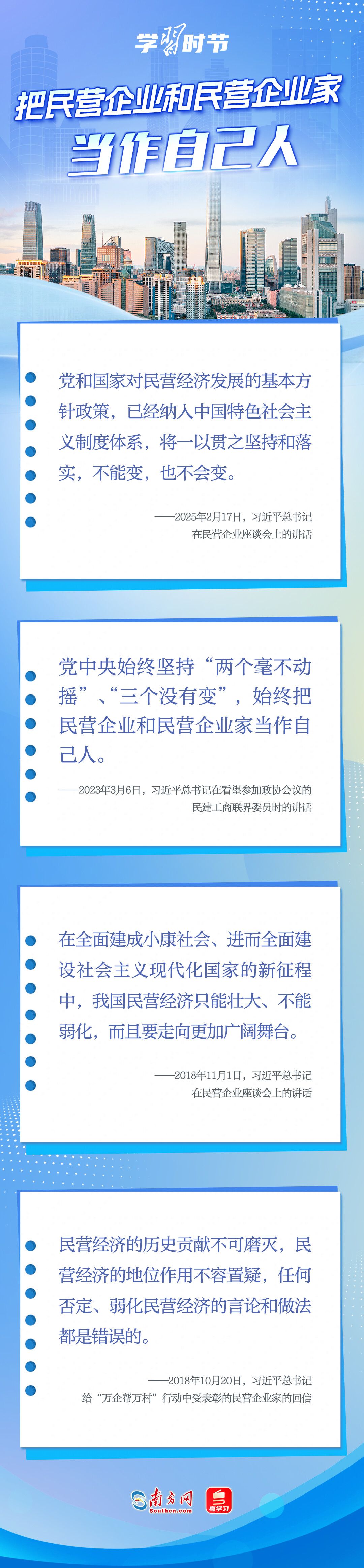 2月17日,习近平总书记在出席民营企业座谈会时强调,党和国家对民营经济发展的基本方针政策,已经纳入中国特色社会主义制度体系,将一以贯之坚持和落实,不能变,也不会变。