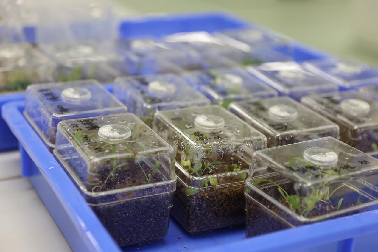 2022年4月10日拍摄的三亚崖州湾科技城种子实验室的植物幼苗。新华社记者 张丽芸 摄