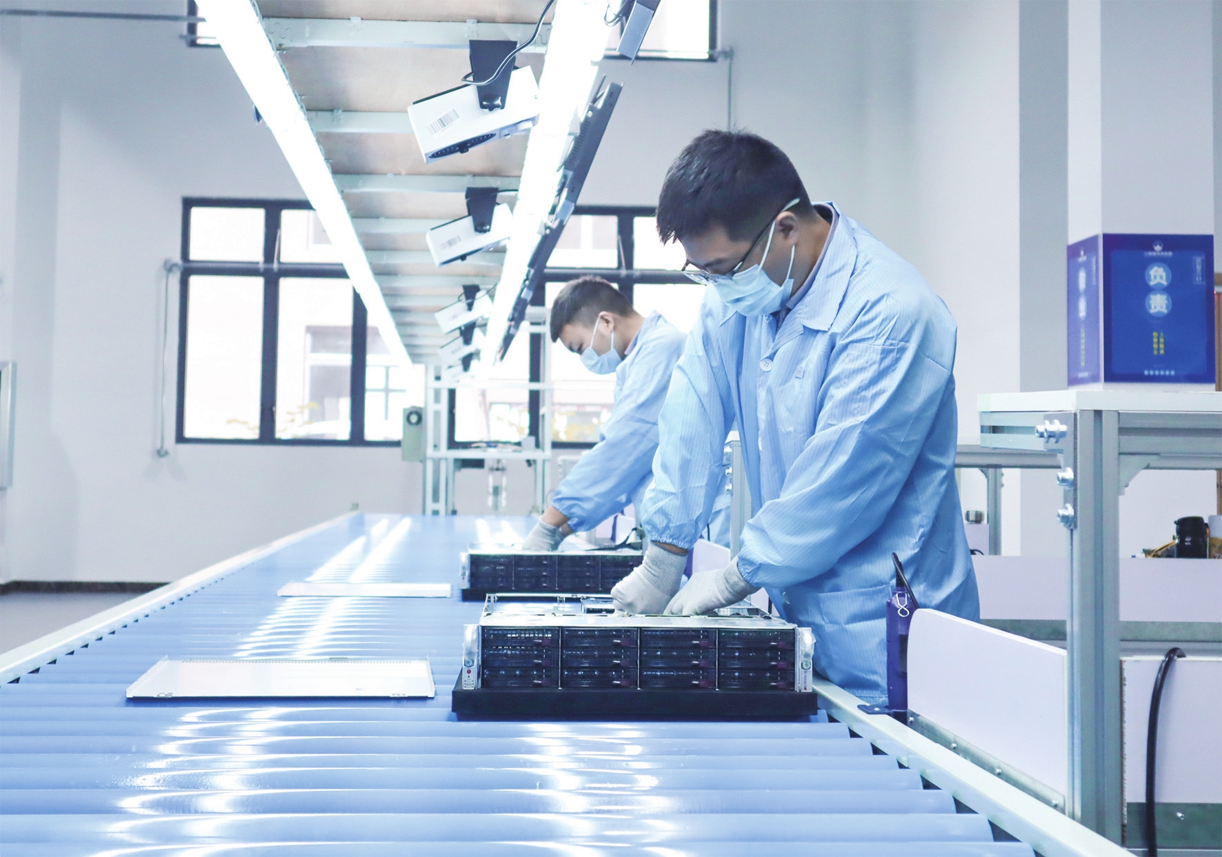 三峡星未来数据科技(宜昌)有限公司服务器生产检测中心内,工人们正在详细检测产品。(通讯员詹杨洋 摄)