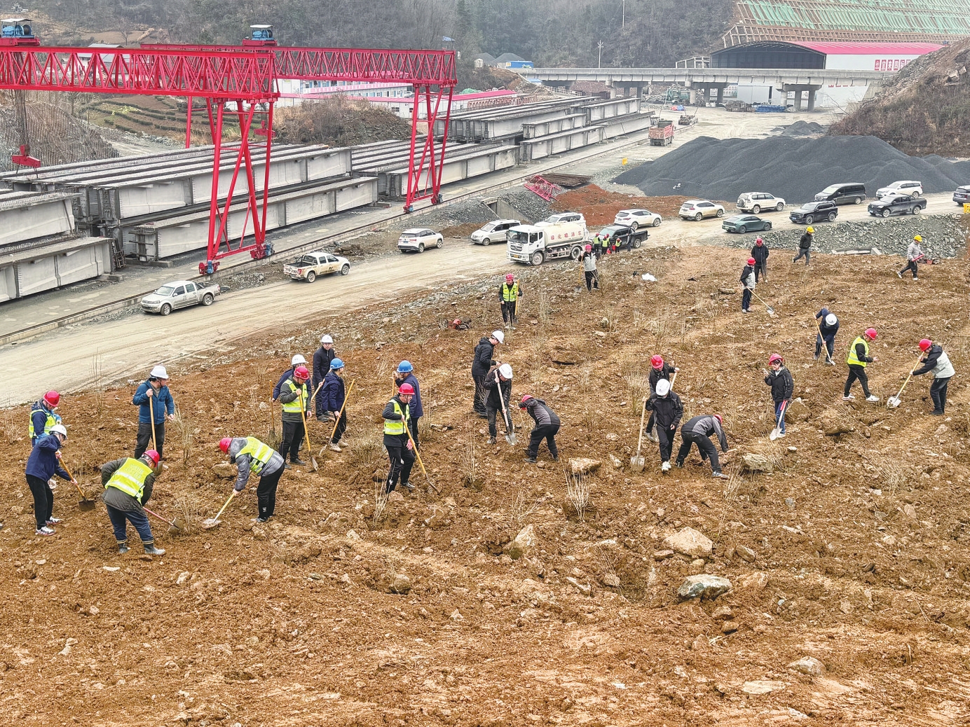 3月12日,湖北交投宜来高速宜昌段建设者在五峰土家族自治县茅坪村义务植树,共栽种1000余株树苗。(记者宋钰杰、通讯员李智 摄)