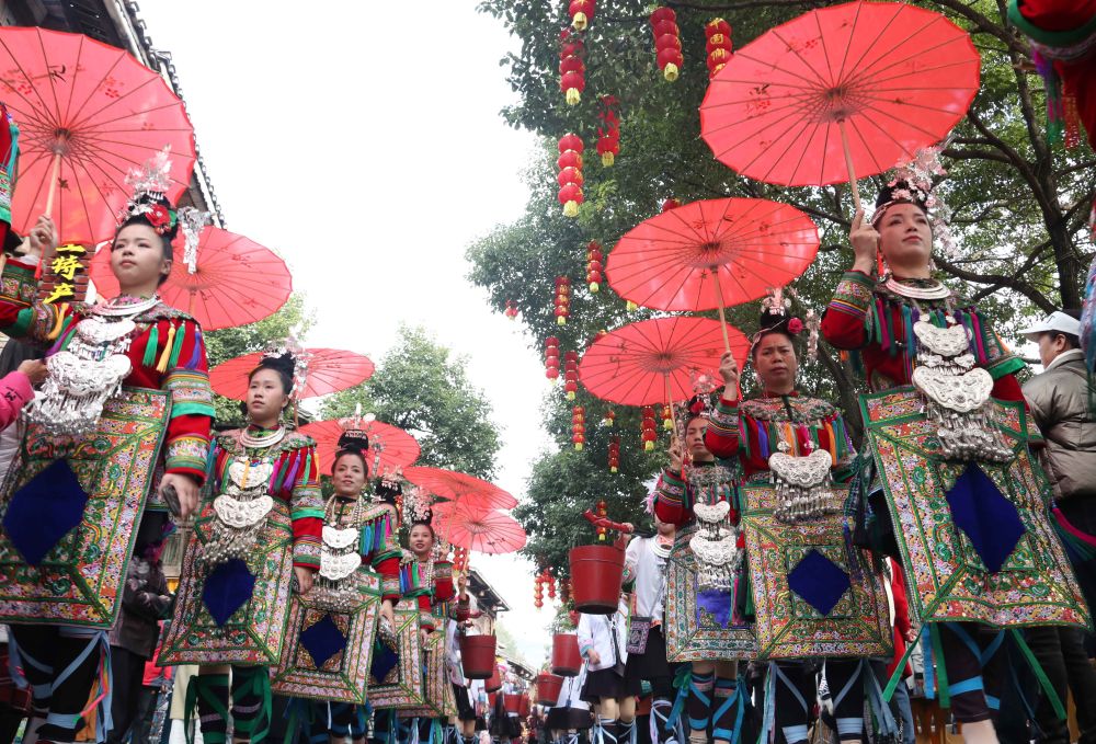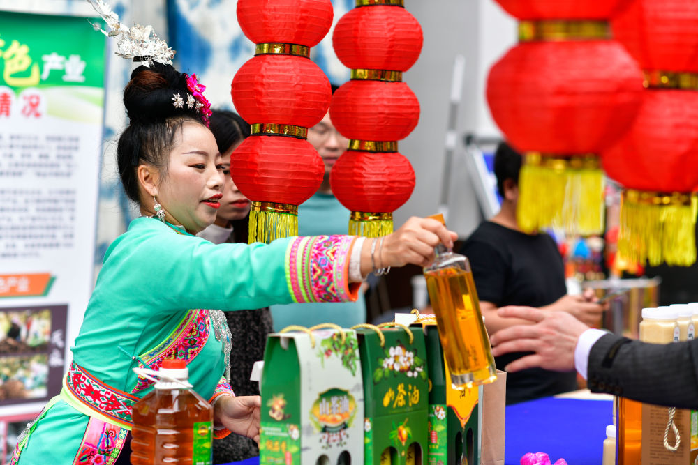 肇兴侗寨村民在侗年年货集市销售地方特产。新华社记者 杨文斌 摄