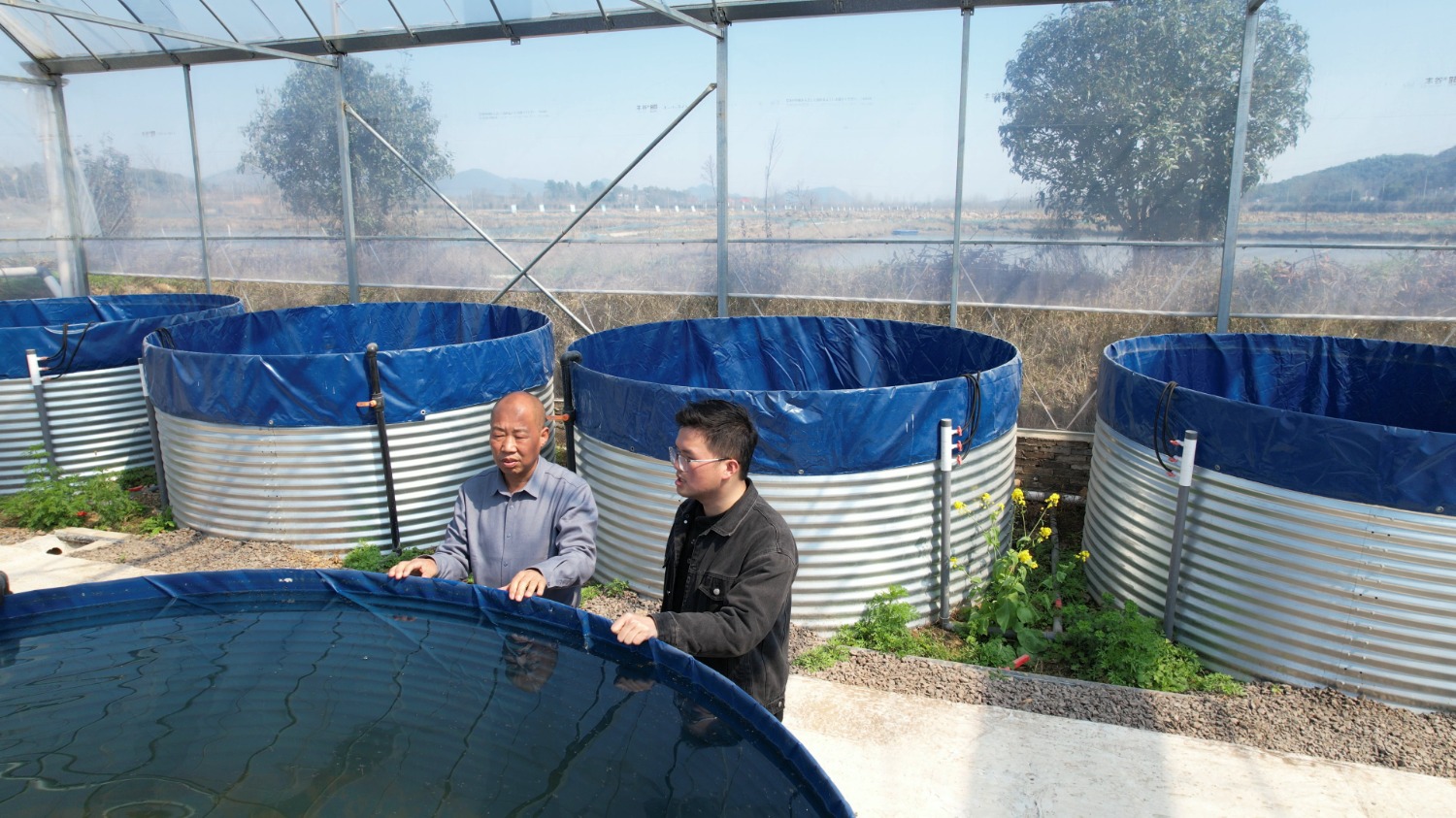 虽然出现了亏损,但舒思地没有放弃。从2019年起,他四处“拜师学艺”,很快便掌握了在稻田套养小龙虾的技术。也是在这段时间的学习中,舒思地意识到,传统水产养殖面临着养殖效率低下、疾病防控难、市场风险抵抗弱等诸多问题,不能适应市场需求,只有掌握现代养殖技术,才能保障水产养殖业长远发展。他决定学习先进地区的做法,将科技引入渔业。