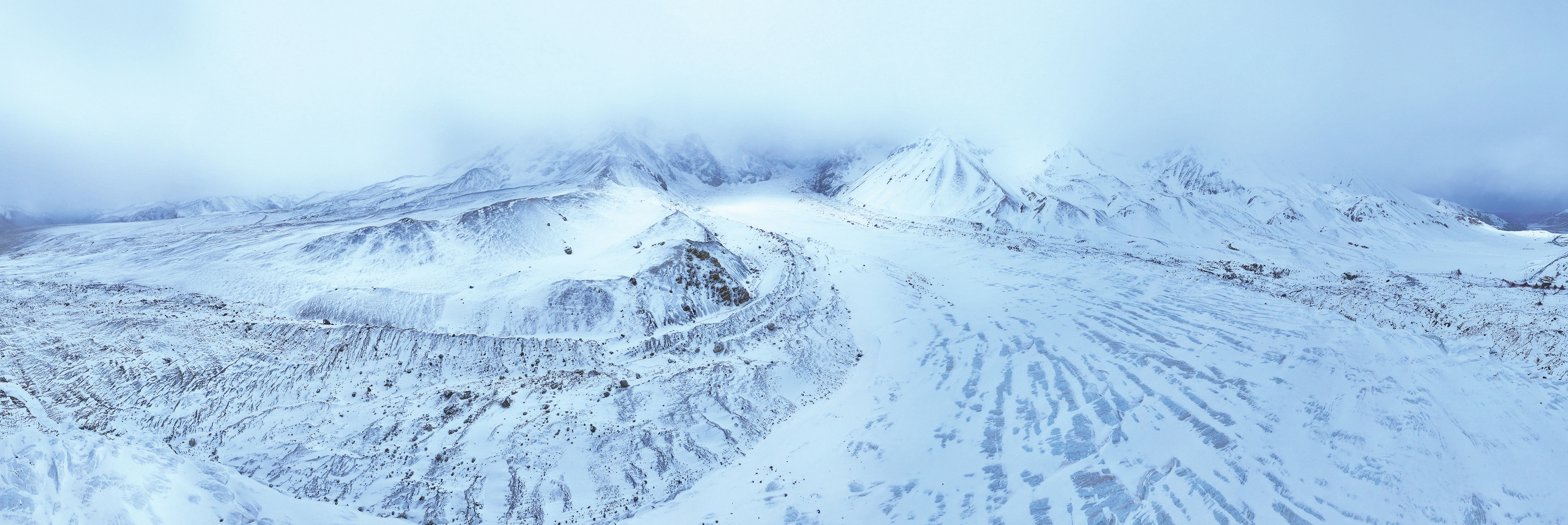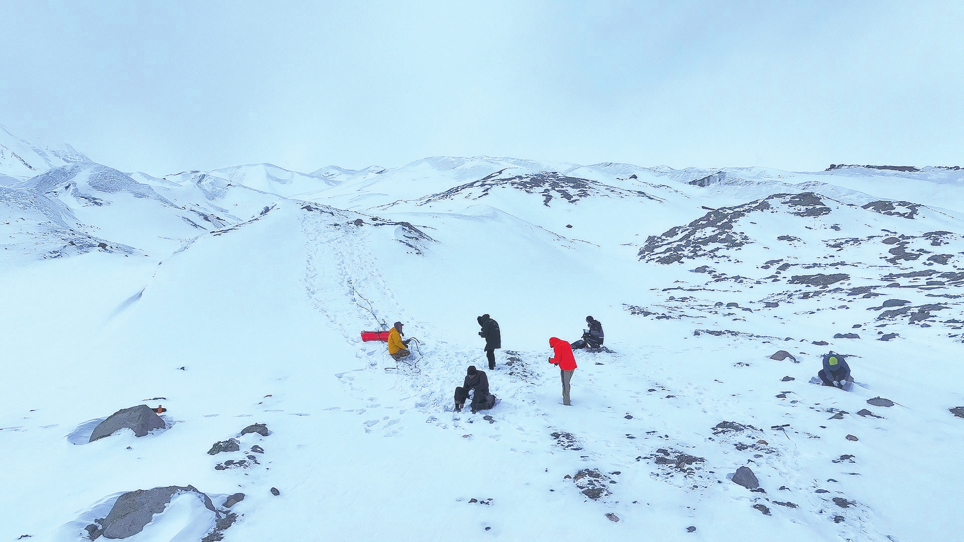 为了观测和收集影像, 在海拔4600米冰川里,科技工作者和影像采集者负重攀爬穿越了七个多小时。