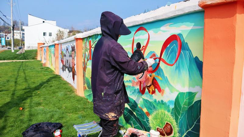 近段时间,村里来了三名画师,对着墙一画就是一整天,踩着风火轮打板栗的哪吒、对着莲沱畔比爱心的殷夫人……一幅幅创意画作跃然墙面,村民们纷纷前来围观,有趣极了。