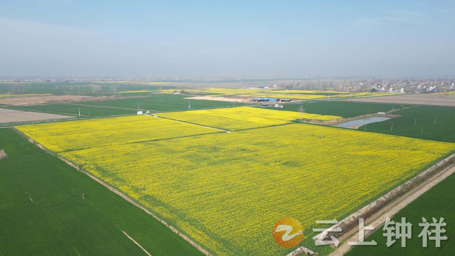 湖北省钟祥市深入开展油菜大面积单产提升行动,在全市范围内建设“万亩片、千亩方、百亩田”高产示范片30余个,辐射17个乡镇20余万亩。眼下,钟祥各地油菜花正陆续迎来盛花期,满地金黄绘就出一幅乡村振兴新画卷。