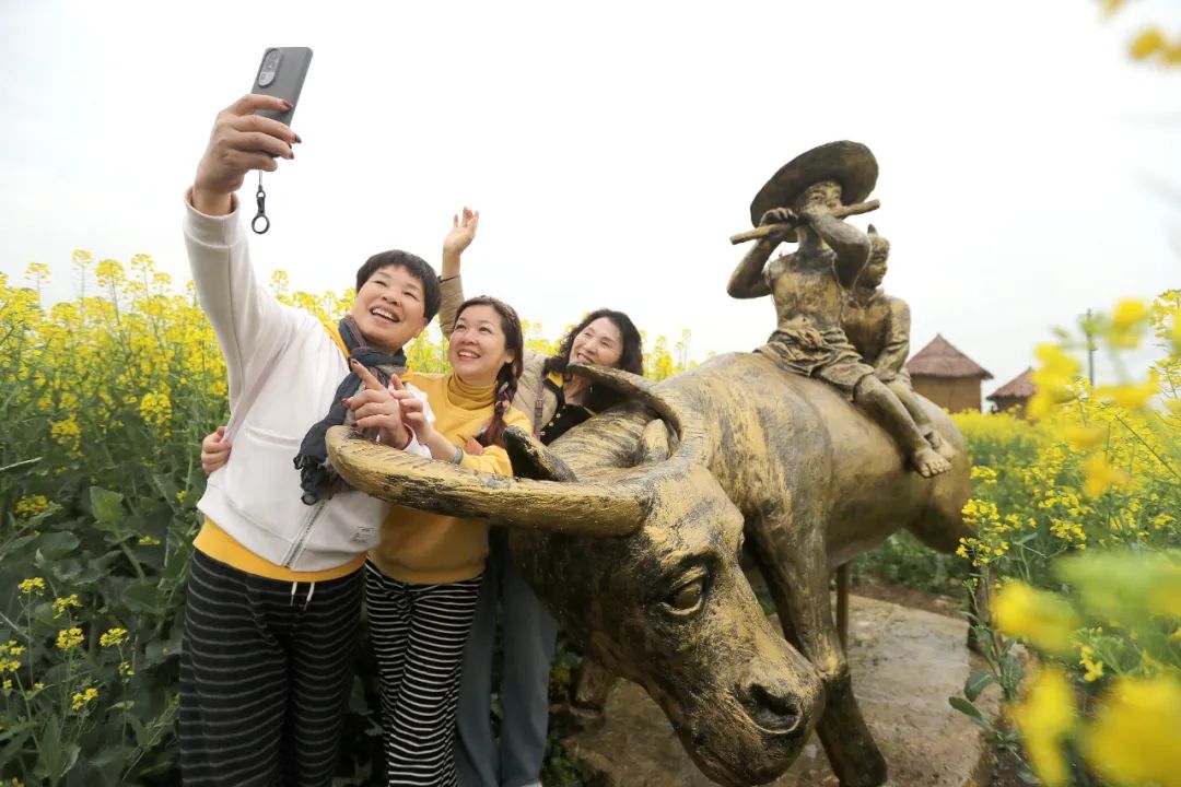 与太乙哪吒共赏春,与大猩猩拍照打卡,随手在油菜花地弹奏乐章……春日和畅惠风中,游客们在荆门沙洋县80万亩油菜花海中徜徉,感受万物生长的最美时节。