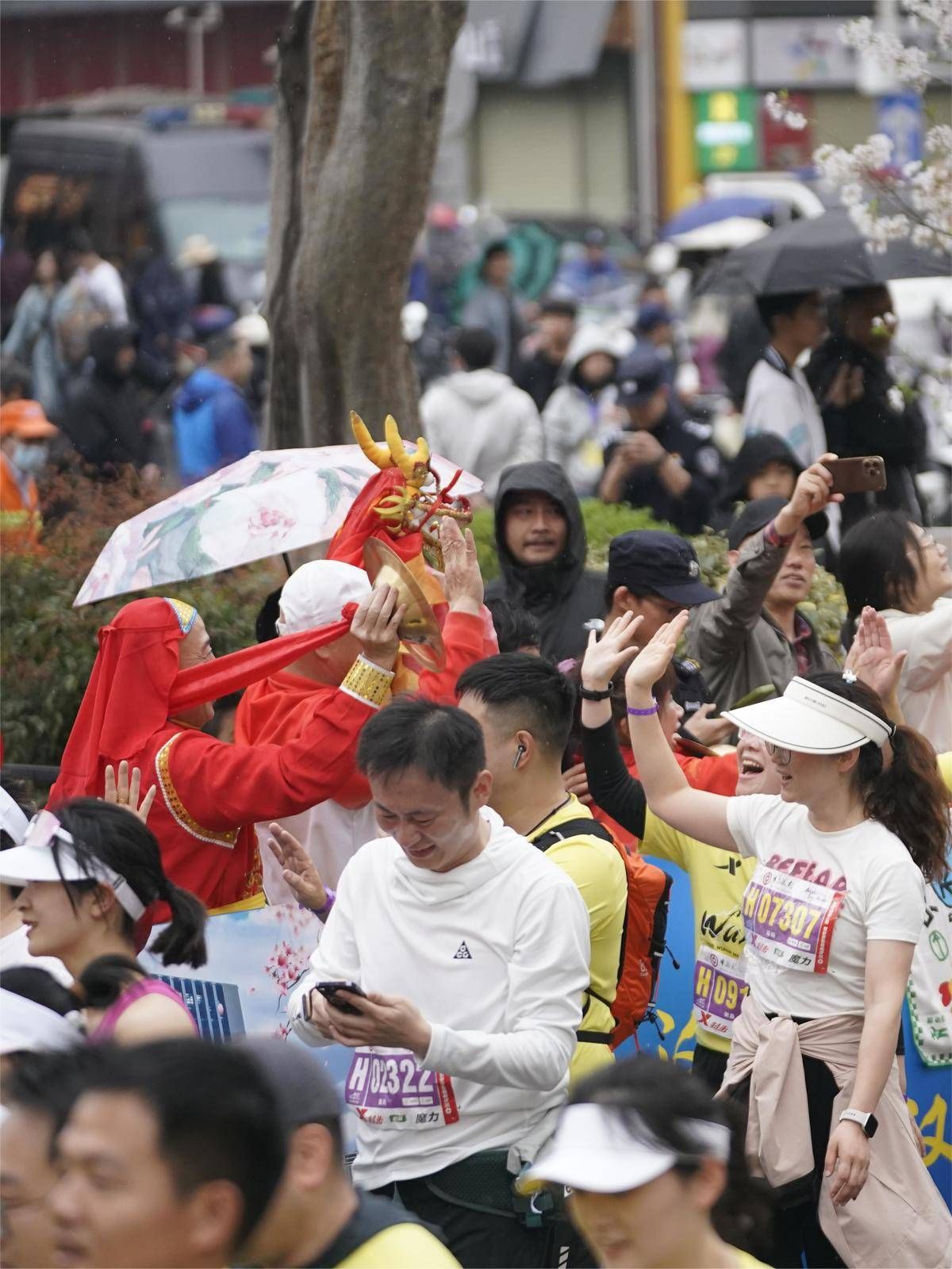 居民自发组成锣鼓队热情助威,摇滚、楚剧、汉派民谣、民俗表演轮番暖场,热闹非凡。