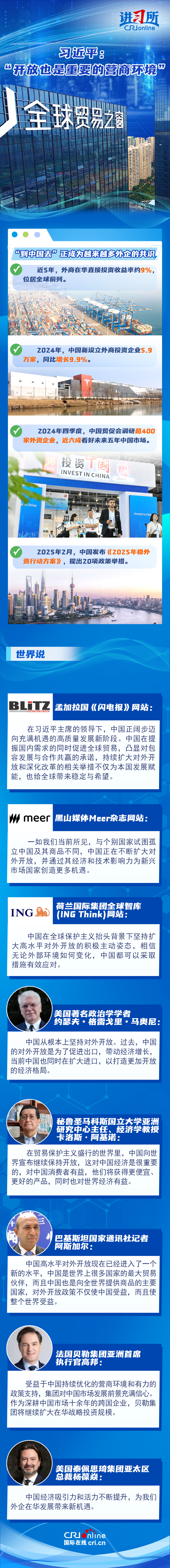 “中国开放的大门不会关闭,只会越开越大。”去年12月,中国将“扩大高水平对外开放,稳外贸、稳外资”列为今年政府重点任务。新年以来,随着政策红利持续释放,外资不断用行动为中国投下“信心票”:德国光电行业巨头蔡司宣布将在上海购地自建大中华区总部园区,意大利百旺集团亚洲总部暨新工厂在苏州高新区开业,日本丰田汽车决定在华独资设立雷克萨斯纯电动汽车及电池的研发和生产公司……在他们看来,中国持续优化营商环境、扩大高水平开放,经济吸引力和活力不断提升,不仅为中国发展赋能,也给全球带来稳定与希望。