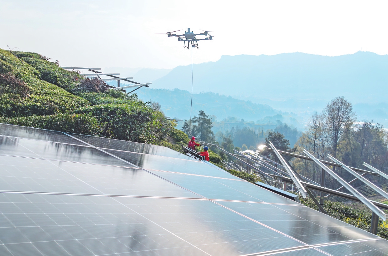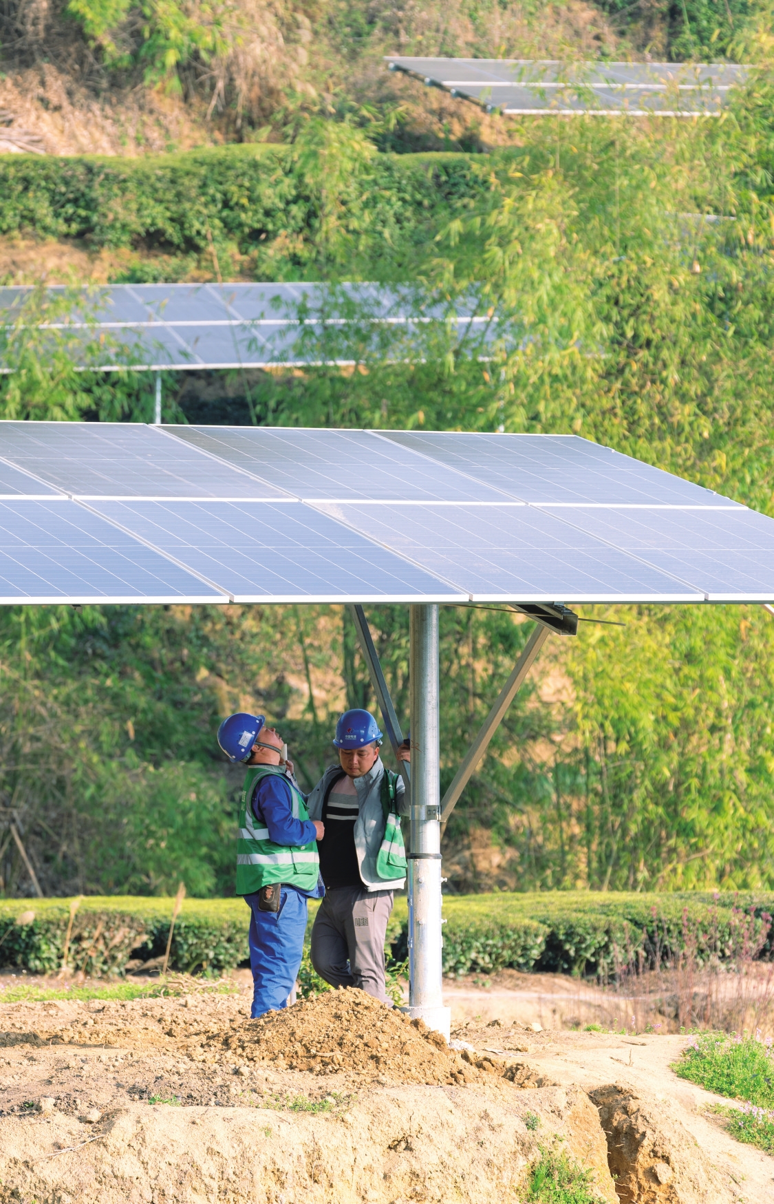 3月20日,秭归县茅坪镇建东村茶光互补光伏电站项目建设现场,村民正在采收春茶。近年来,该县充分利用荒山荒坡、低产茶园、村民屋顶等,建设光伏电站,让日照资源变成产业资源,助力当地能源清洁低碳转型的同时增加农民收入。据悉,该项目建成投产后,平均每亩茶光互补光伏电站每年能为村民额外增收900元。(通讯员周仕伟 摄)