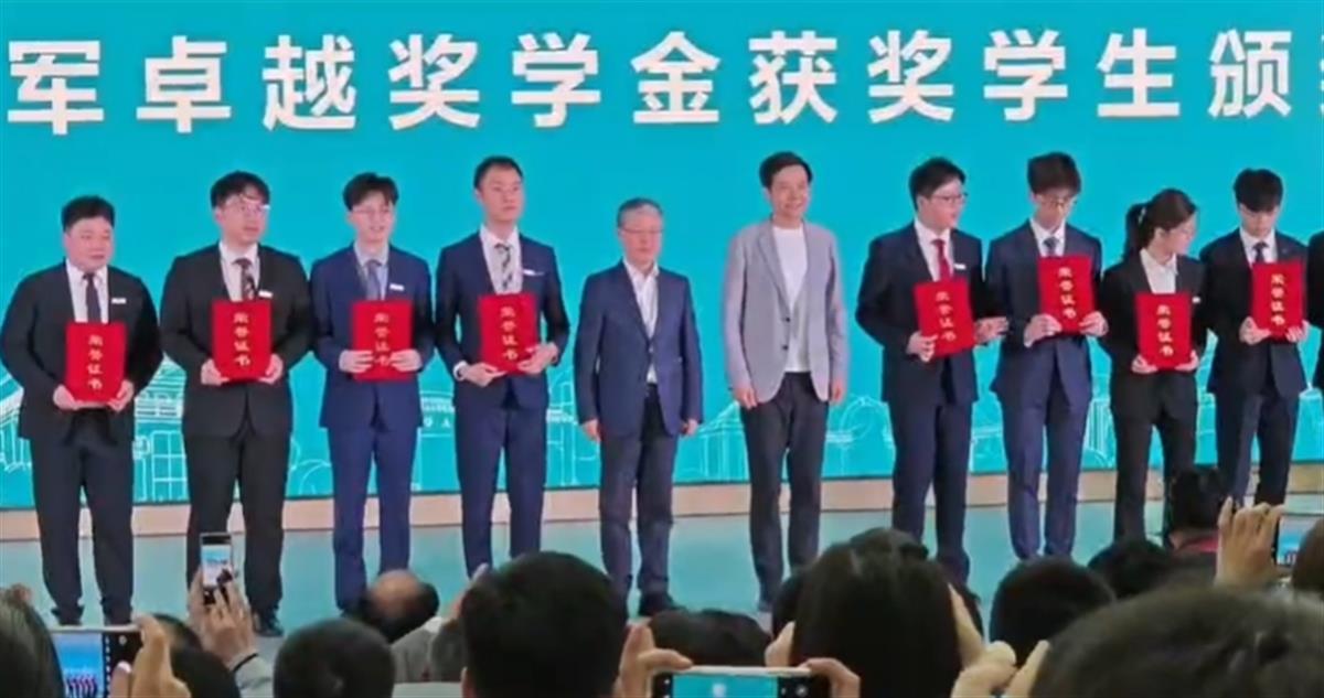 3月24日晚,雷军奖学金颁奖会在武汉大学举行,10名学生获得雷军卓越奖学金,每人获得10万元,雷军亲自给获奖学生颁奖,并和他们合影留念。