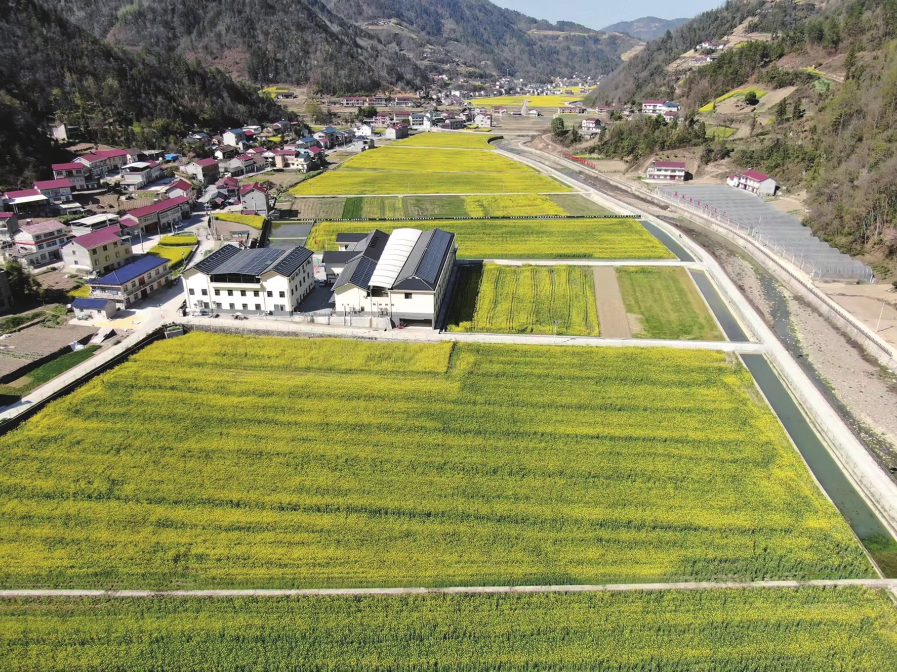 3月24日,长阳土家族自治县渔峡口镇枝柘坪村的3000多亩油菜花海迎来盛放期。无人机航拍镜头下,连绵起伏的金色花浪与青翠山峦交相辉映,蜿蜒的溪流穿行其间,白墙黛瓦的农家院落点缀在花田间,勾勒出一幅生机勃勃的“田园春色图”。(记者董志烈、通讯员宋飞 摄)