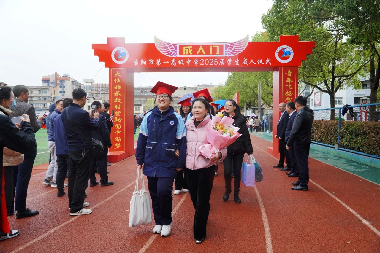 向安定副校长的总结讲话之后,伴随着激昂的音乐,高三学子在老师和家长的陪伴下,迈着坚定的步伐,依次穿过成人门,踏上了新的人生征程。这一刻,他们不仅跨过了年龄的门槛,更在心中种下了对未来的无限憧憬与坚定信念。成人门下,每一步都踏出了成长的足迹,每一声欢呼都是对青春最美好的赞歌。