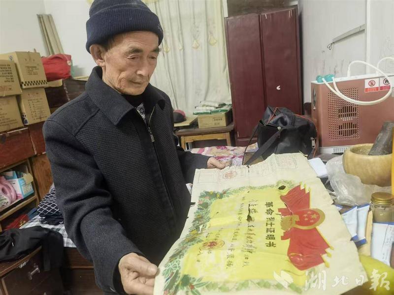 出发前,方汉炳仔细整理革命烈士证明书。 (湖北日报全媒记者 王婧 摄)