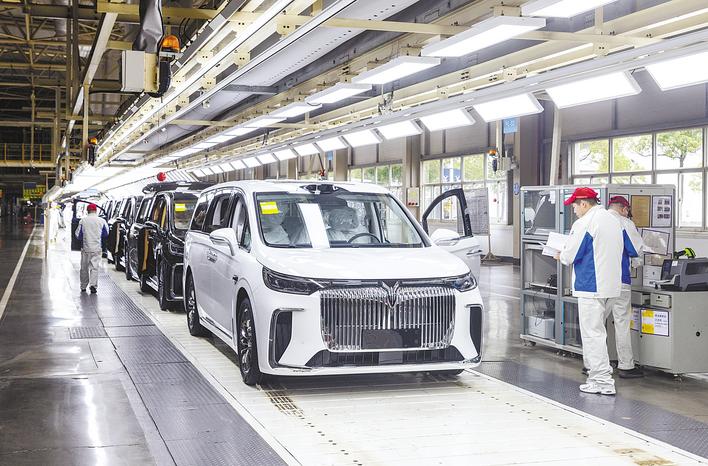岚图汽车数字化总装车间,工人在流水线上作业。(湖北日报全媒记者 柯皓 摄)