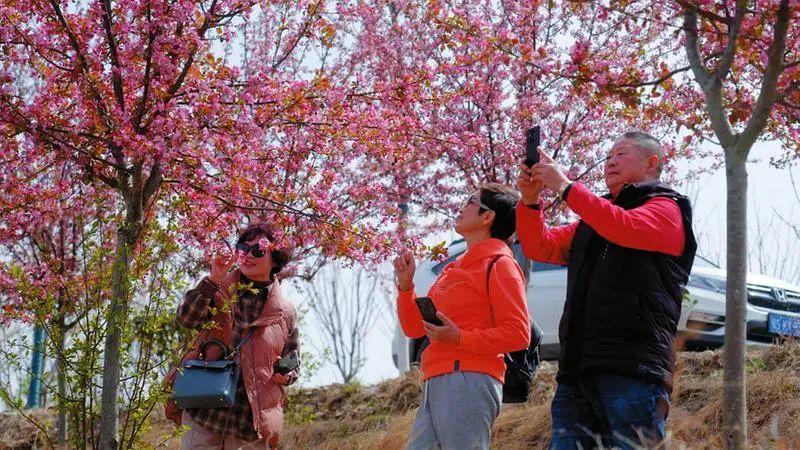 而在吴店镇千亩海棠园,垂丝海棠、绚丽海棠、西府海棠、贴梗海棠四大品种的海棠花迎风怒放,吸引了众多游客前来观赏。游客李敦秀特意从20多公里外的余店镇赶来,与好姐妹们一同拍照留念。这里的海棠园种植面积达2000多亩,今年全镇海棠花观赏活动已累计接待游客1万多人次,收益30多万元。吴店镇还将依托文化与旅游资源,打造精致美丽乡村,助推全域旅游发展。