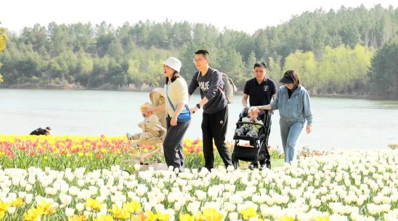 炎帝故里景区九龙岛百花园的近万株郁金香绽放,景区以此为核心推出主题游园活动,结合汉服体验、祭祀祈福、乐队演奏等互动打卡活动,吸引游客日均超万人次。大洪山风景区将“樱花长廊+山野徒步”组合,柳林镇连续3年举办樱花游园会,西游记公园以蟠桃园桃花为背景推出亲子游乐、非遗展演等项目,随州的“春日经济”通过多元融合,构建出沉浸式体验场景。