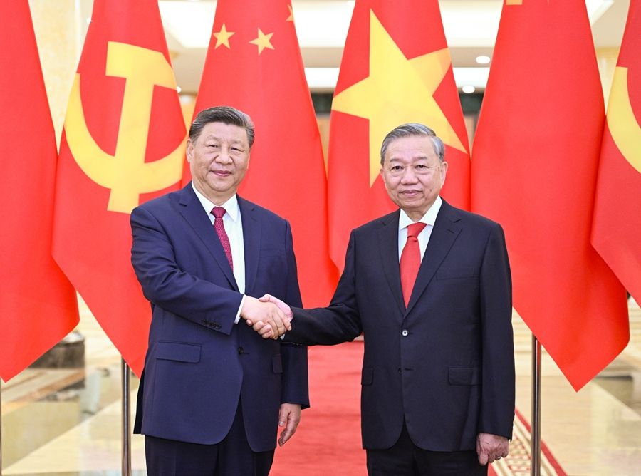 习近平指出,很高兴对越南进行国事访问,实现同苏林总书记的首轮互访。今年是越南共产党成立95周年、越南建国80周年和南方解放50周年,我代表中国共产党和中国政府向越方致以热烈祝贺。中方将一如既往支持越南走好符合本国国情的社会主义道路,胜利召开2026年越共十四大,朝着建党建国“两个一百年”奋斗目标不断迈进。