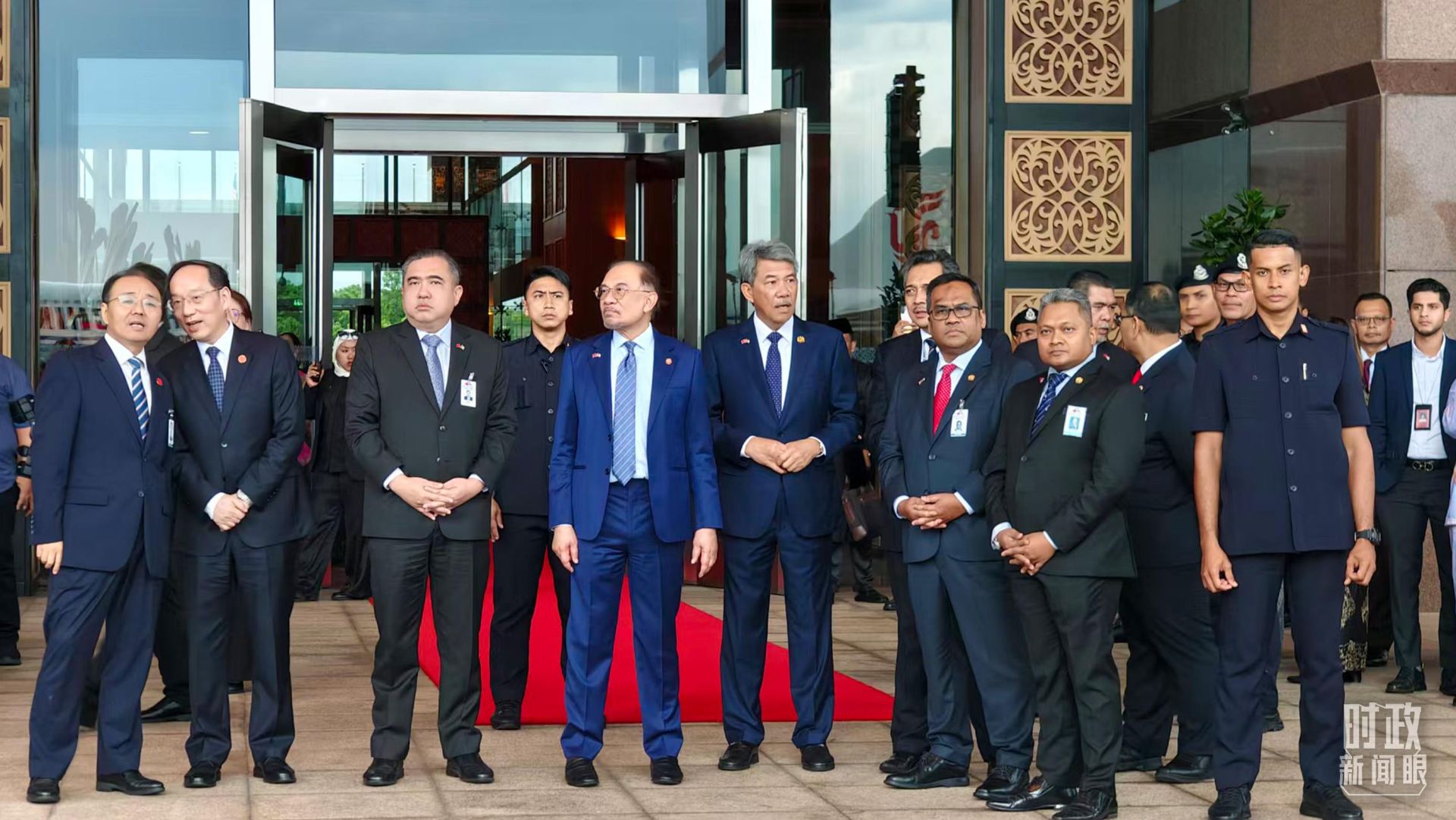 △安瓦尔总理率高级官员到机场迎接习主席到访。(总台央视记者韩锐拍摄)