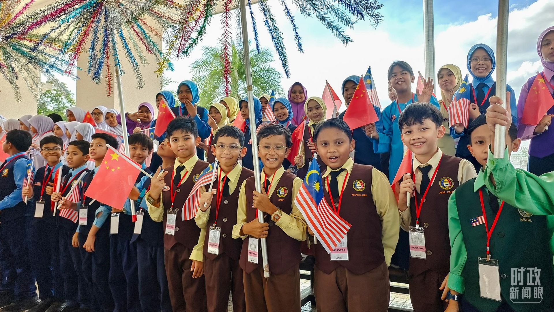 △总理官邸外等候迎接习主席的马来西亚青少年。(总台央视记者韩锐拍摄)