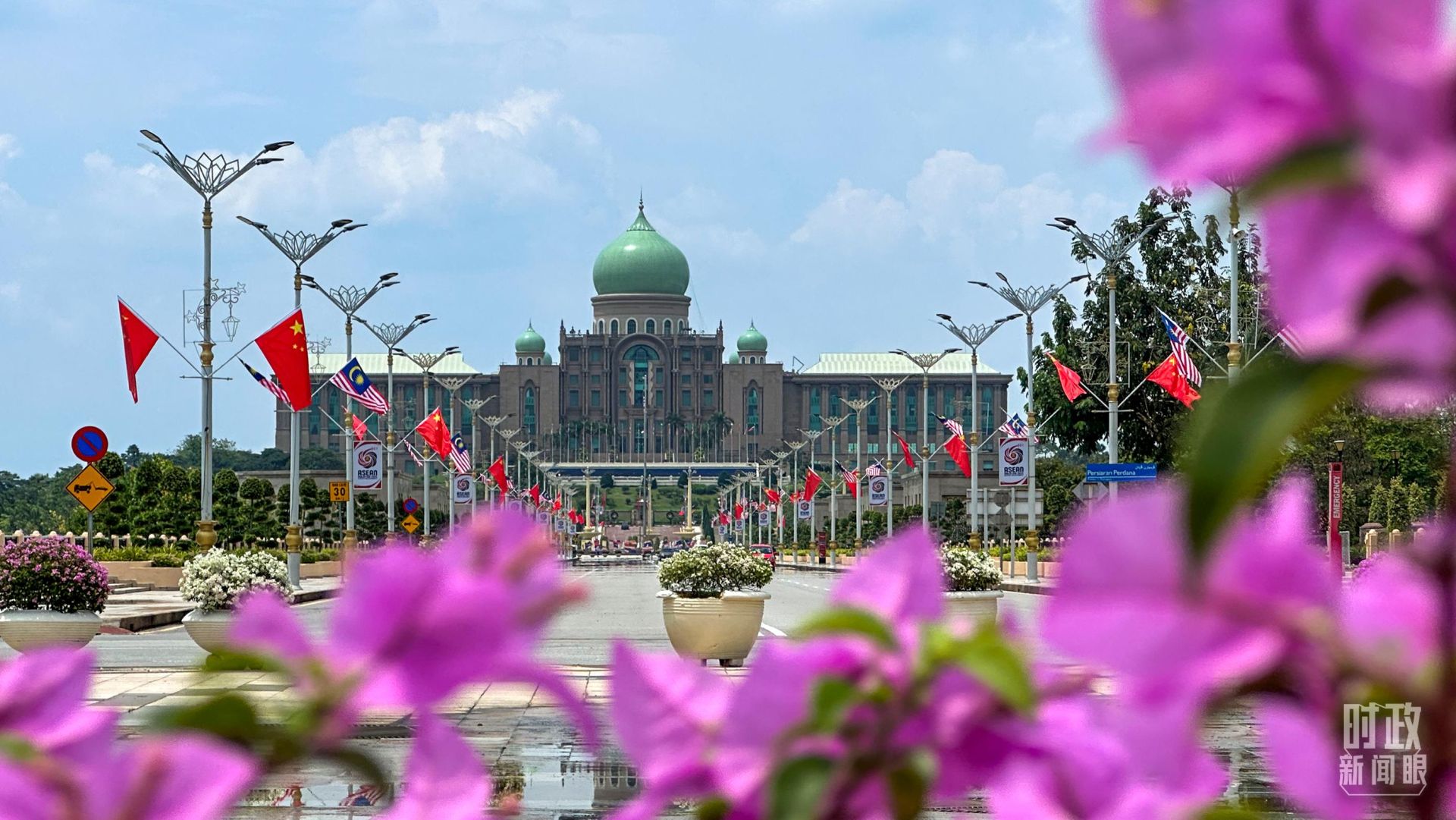 △布特拉加亚街头,中马两国国旗迎风飘扬。(总台央视记者刘岳拍摄)