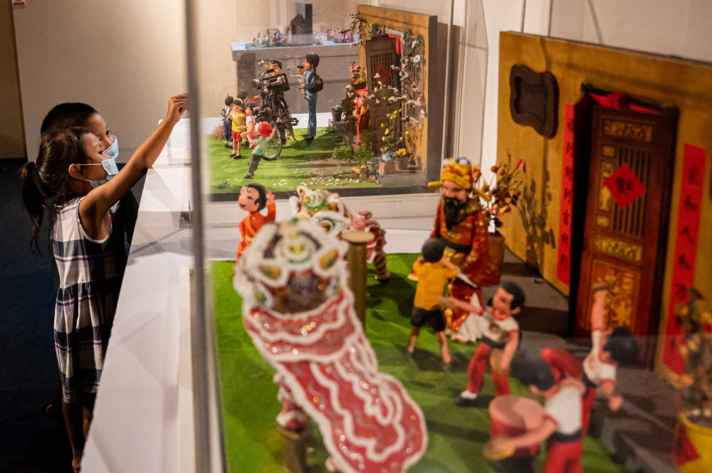 2021年3月27日,小观众在马来西亚吉隆坡国家博物馆参观《中国农历历法展》,了解与中国农历有关的风俗习惯,学习历法知识。