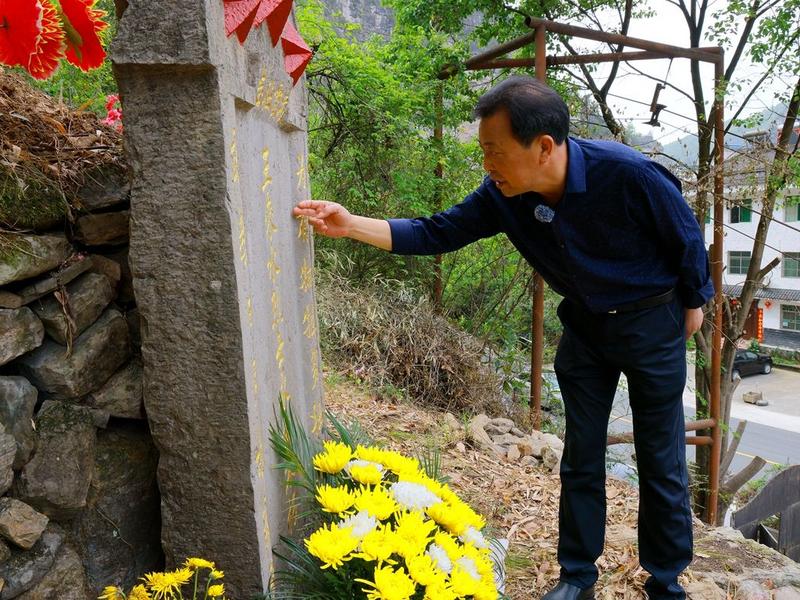 4月16日上午,60岁的王双喜从安徽省池州市东至县跨越千里来到湖北省宜昌市夷陵区黄花镇新坪村,为父亲王来水祭扫。烈士墓前,王双喜为父亲献上提前准备好的鲜花和祭品,轻拭父亲的墓碑,深深鞠躬、跪拜,眼神里满是对父亲的无尽思念。