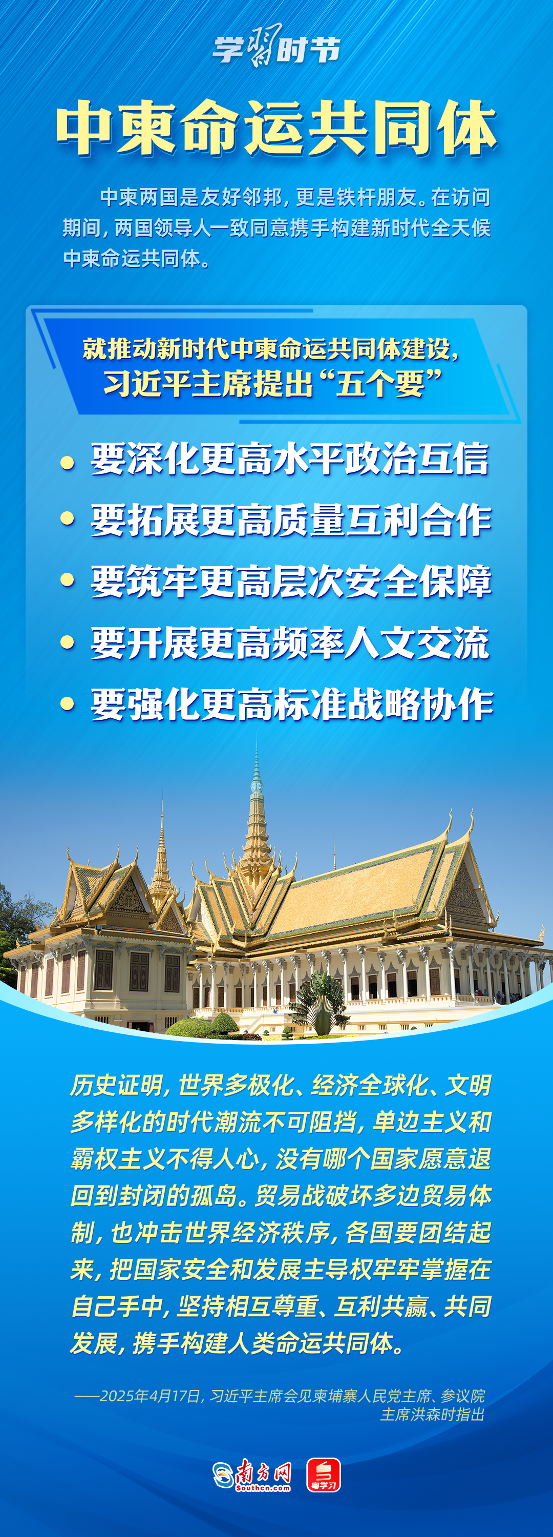 日前,中央周边工作会议召开,强调要聚焦构建周边命运共同体,努力开创周边工作新局面。4月14日至18日,习近平主席出访东南亚三国——越南、马来西亚、柬埔寨。这是习近平主席今年首次出访,对推动中国同三国关系发展具有重大意义,也为周边命运共同体建设擘画了新蓝图。