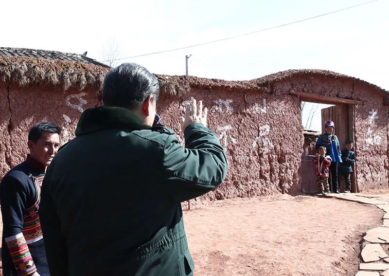 离开村子时,有两个彝族小朋友大声喊道:“习爷爷,再见。”习近平向他们挥挥手说:“小朋友,再见。”