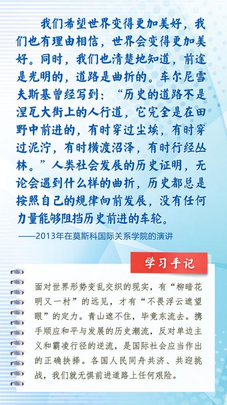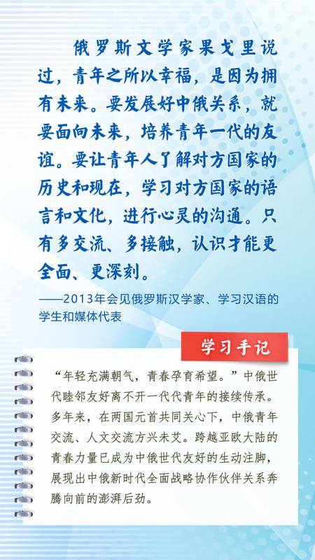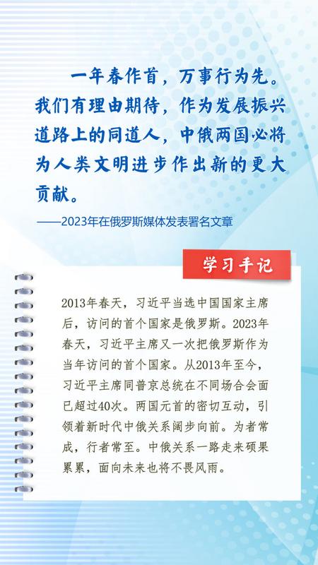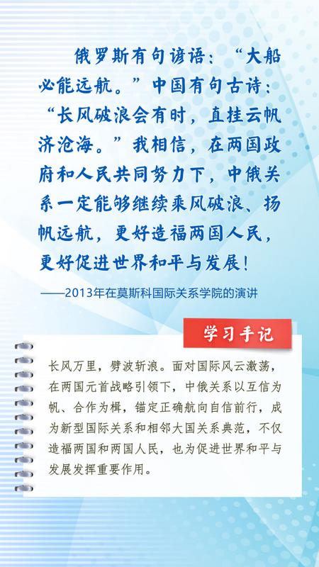 我们一起来学习品读这些饱含哲思的论述,从中感悟新时代中俄关系在复杂的外部环境下坚毅前行之道,感悟习近平主席作为大党大国领袖、世界级领袖的时代担当与天下情怀。