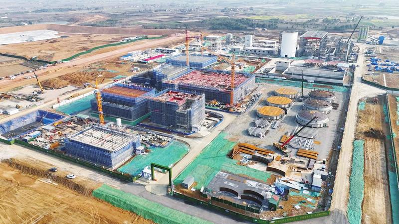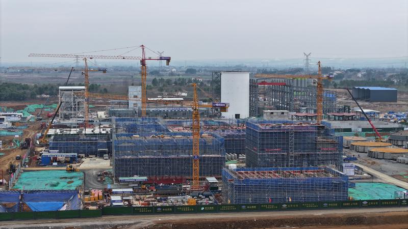 正在紧张施工的湖北徽阳新材料项目一期工程。(记者张锴 摄)