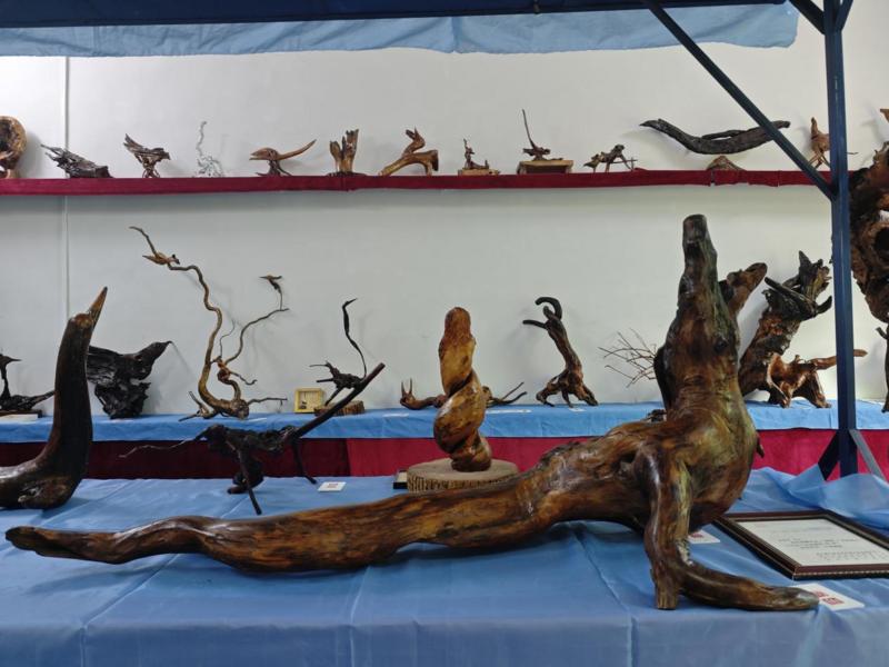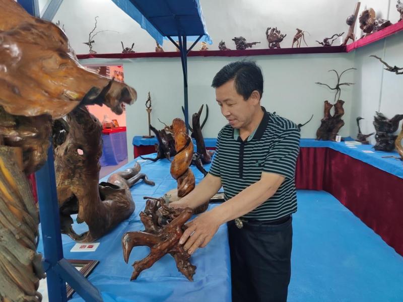 陈景明摆放根雕作品