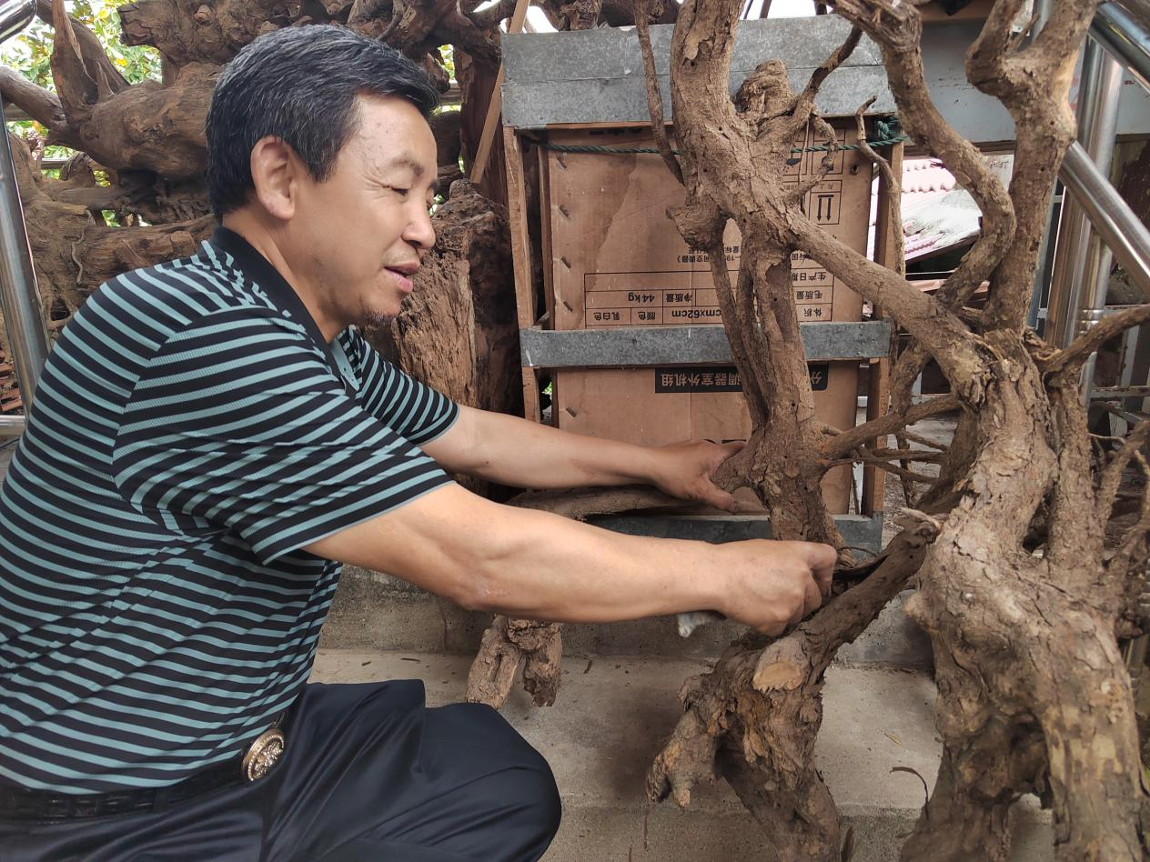 从这只“骆驼”起,在往后的日子里,只要在外面看到那些奇形怪状的树根、树枝,陈景明都会捡回家。