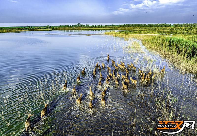 石首麋鹿国家级自然保护区麋鹿成群 李吉 摄