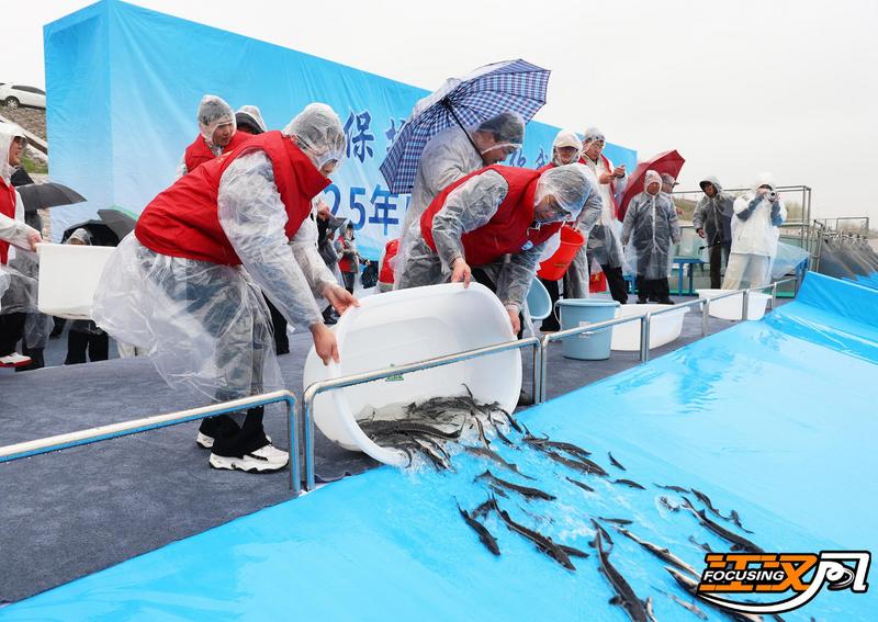 2024年3月28日,中华鲟保护日。荆州市长江水生生物增殖放流广场上,11万余尾子二代中华鲟顺着滑道欢快地投入长江怀抱。近五年来,荆州长期坚持开展中华鲟人工放流活动,已累计向长江干流放流中华鲟子二代超过100万尾。