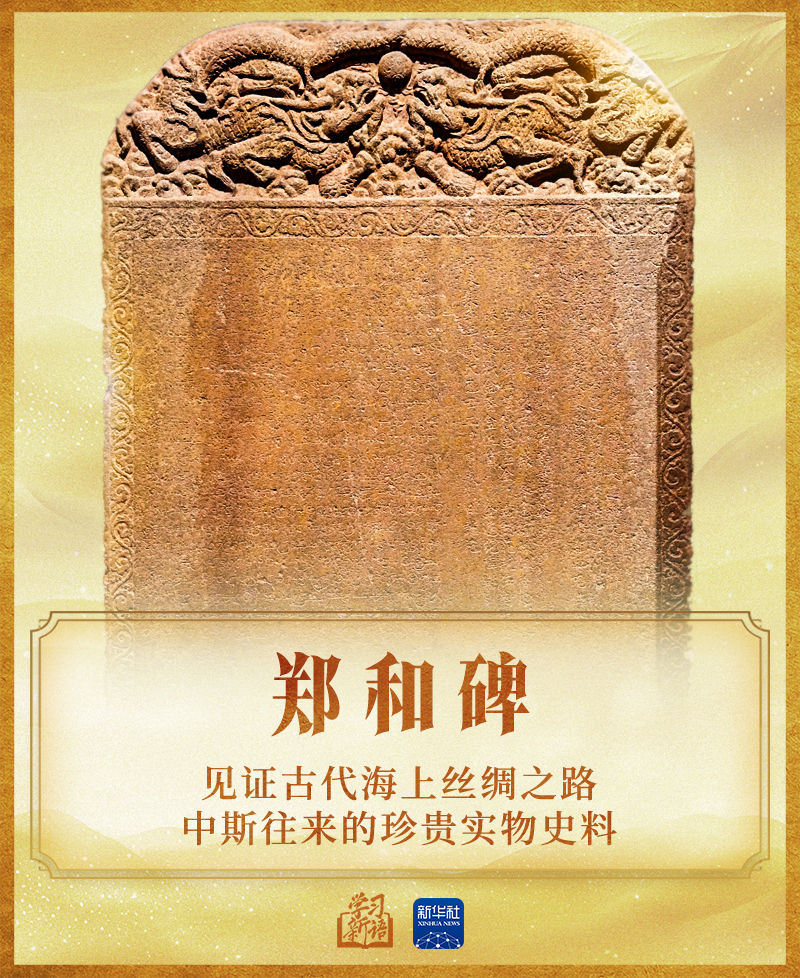 2014年9月,习近平主席在访问斯里兰卡期间,收到一份珍贵礼物——藏于斯里兰卡国家博物馆的郑和碑的拓片。2023年10月,习近平主席在北京会见斯里兰卡总统时专门提到郑和碑,并指出“是两国人民长期友好、互学互鉴的历史见证”。
