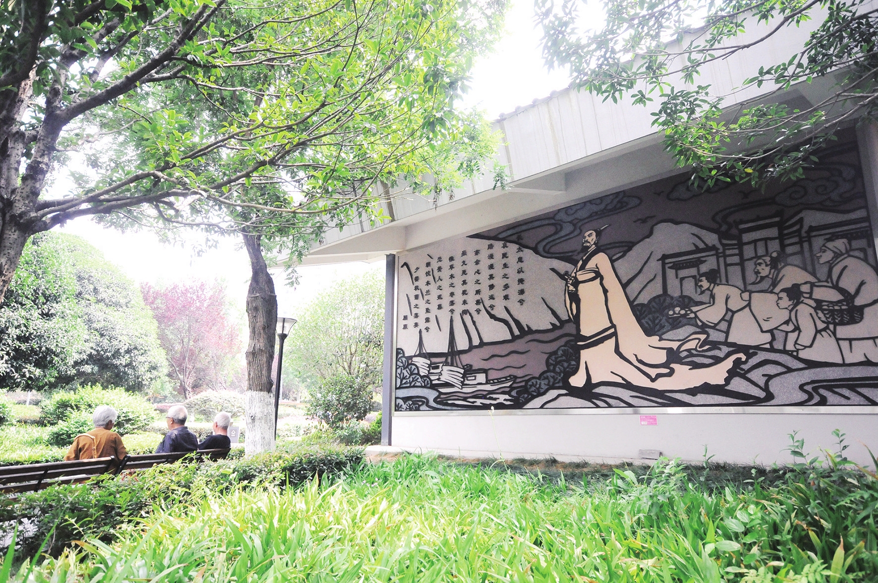 5月27日,伍家岗区万寿公园内一处屈原文化主题壁画,默默传颂着屈原故事。近年来,宜昌注重将屈原文化符号和元素融入城市建设的各个环节,一处处屈原文化广场、公园、展馆,让广大市民从中获得源源不断的文化浸润和精神滋养。(记者黄翔 摄)