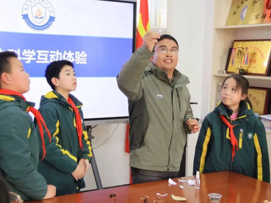 今年2月,武汉市光谷第八小学正式聘任中国科学院植物学博士楚海家为科学副校长,授牌仪式后,楚博士就开始为光谷八小做起了科学教育规划。他凭借自身专业优势,为课程设计提供支撑,开展竹筒驻蜂、攀缘植物研究等项目,增加校园生物多样性,让学生在实践中感受科学魅力。在楚博士的邀请下,孩子们亲手操作苔藓喷水、种子传播等诸多小实验,沉浸在科学探索的乐趣中。