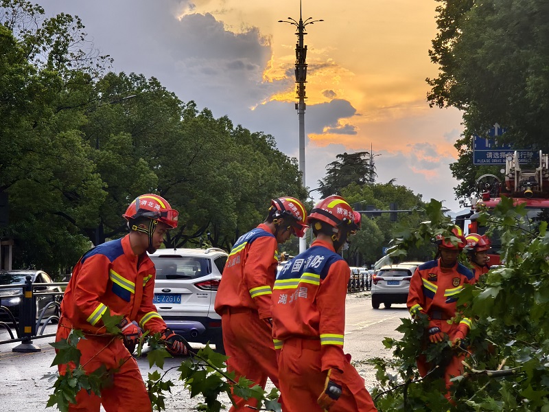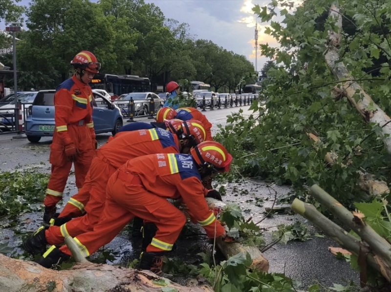 6月17日16时许,受强降雨和大风影响,宜昌市伍家岗区沿江大道附近出现树木倒塌,导致交通堵塞。高新东山消防救援站迅速反应,出动3车18人前往现场处置。