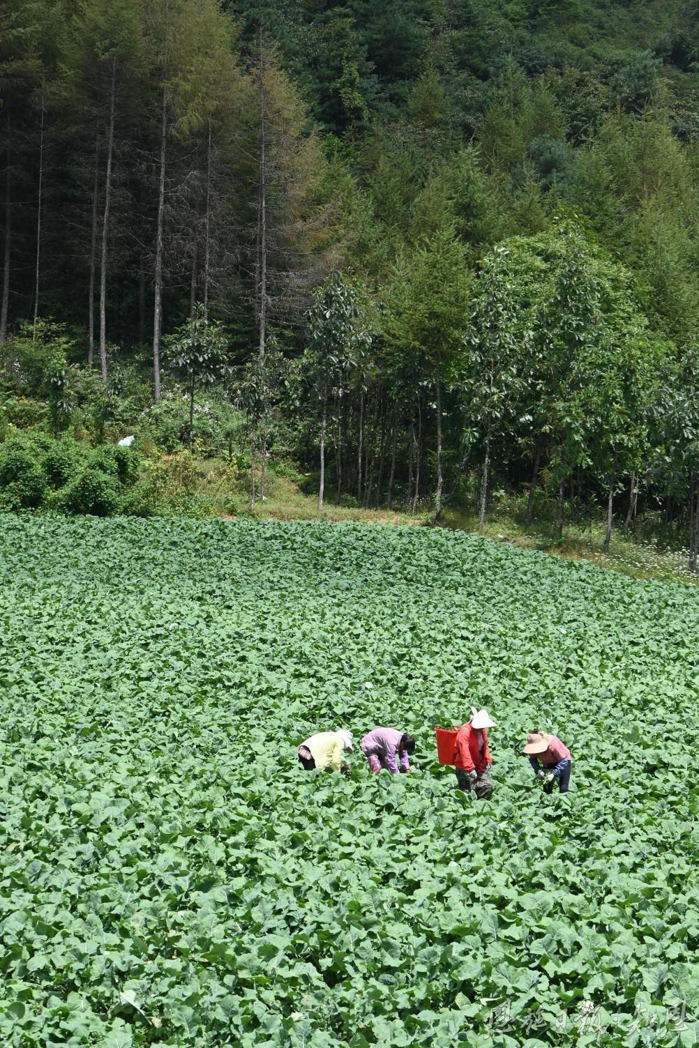 南里渡村村民谢东升是其中之一。他试种了一亩“硒滋圆2号”,收获颇丰。“亩产1000公斤左右,每亩保底增收3000元左右。10月底种,采摘期达4个月,弥补了冬季蔬菜市场的空缺。”谢东升说。