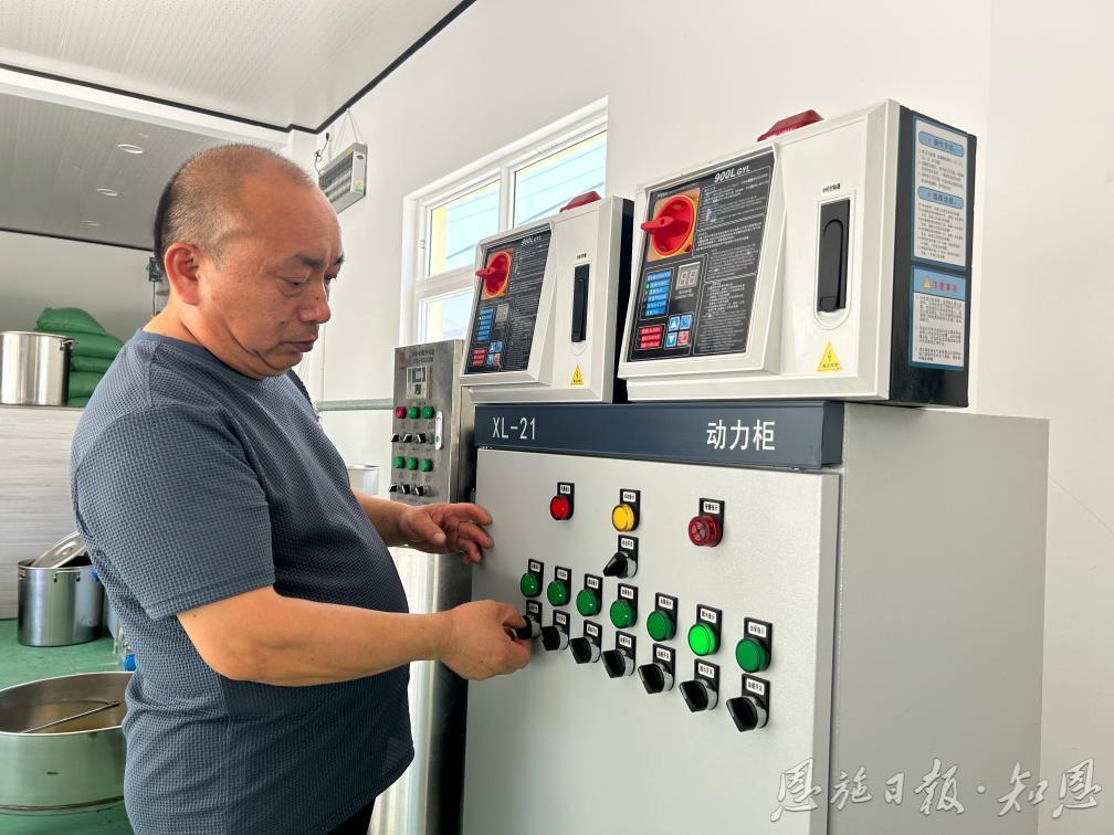 2025年6月16日,容华食品负责人彭容调试半自动生产线。