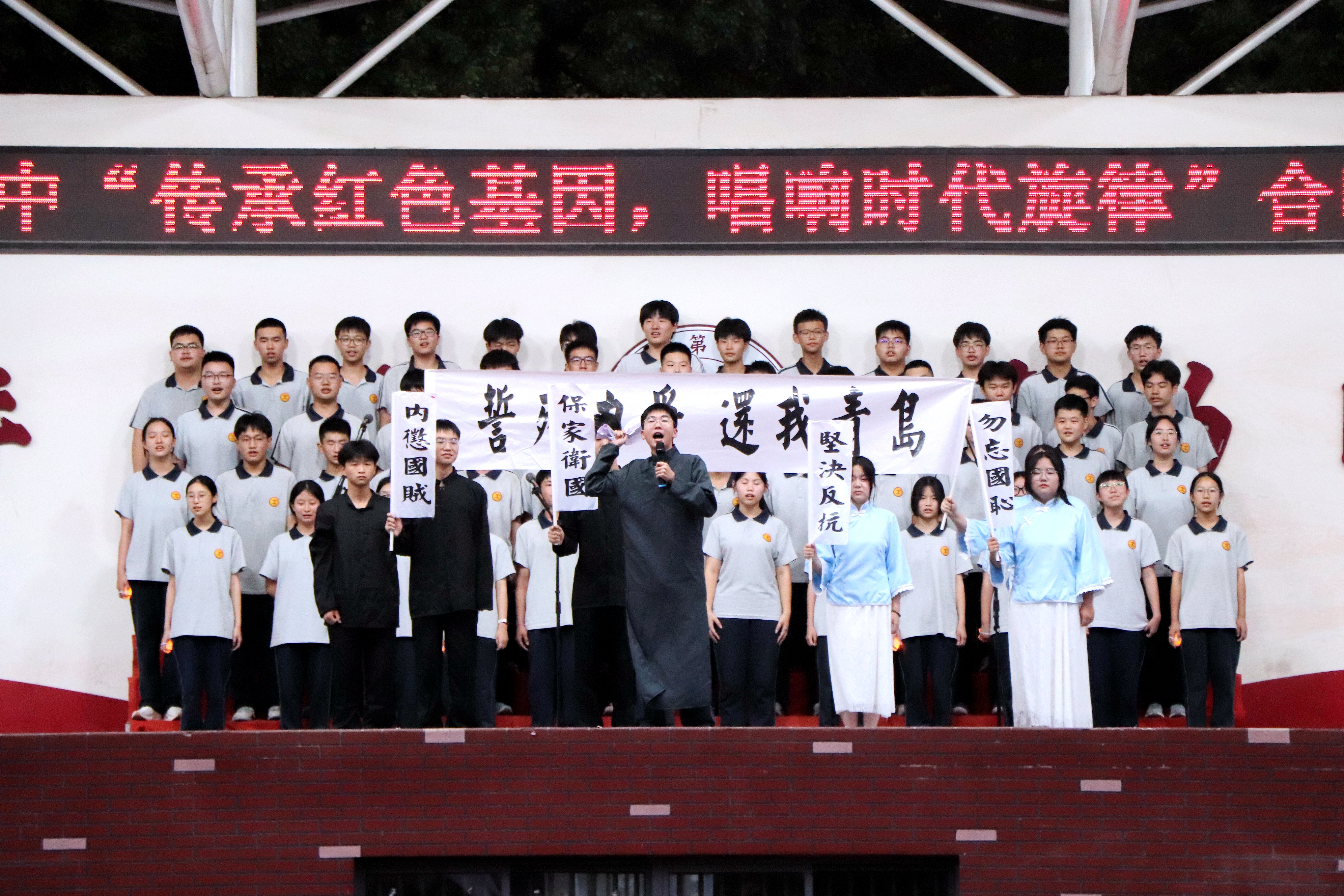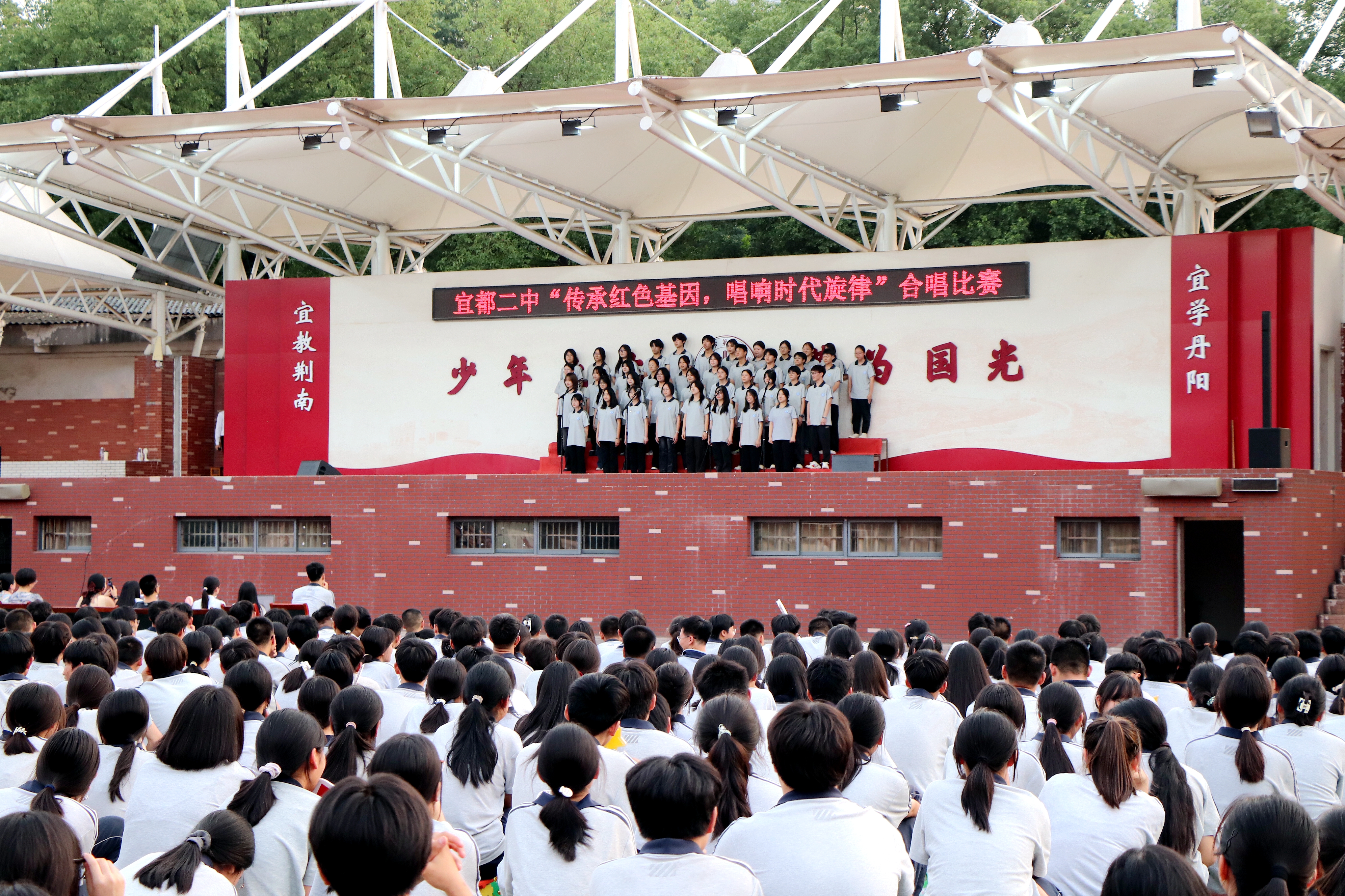 近日,宜都市二中举行2025年“传承红色基因,唱响时代旋律”红歌合唱比赛。该校高一、高二年级全体学生参加了活动,用歌声唱响时代旋律,抒发家国情怀。