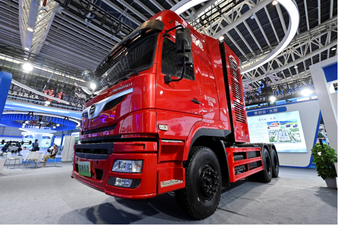 在2024中国(太原)国际能源产业博览会上拍摄的氢能重卡。新华社记者 杨晨光 摄